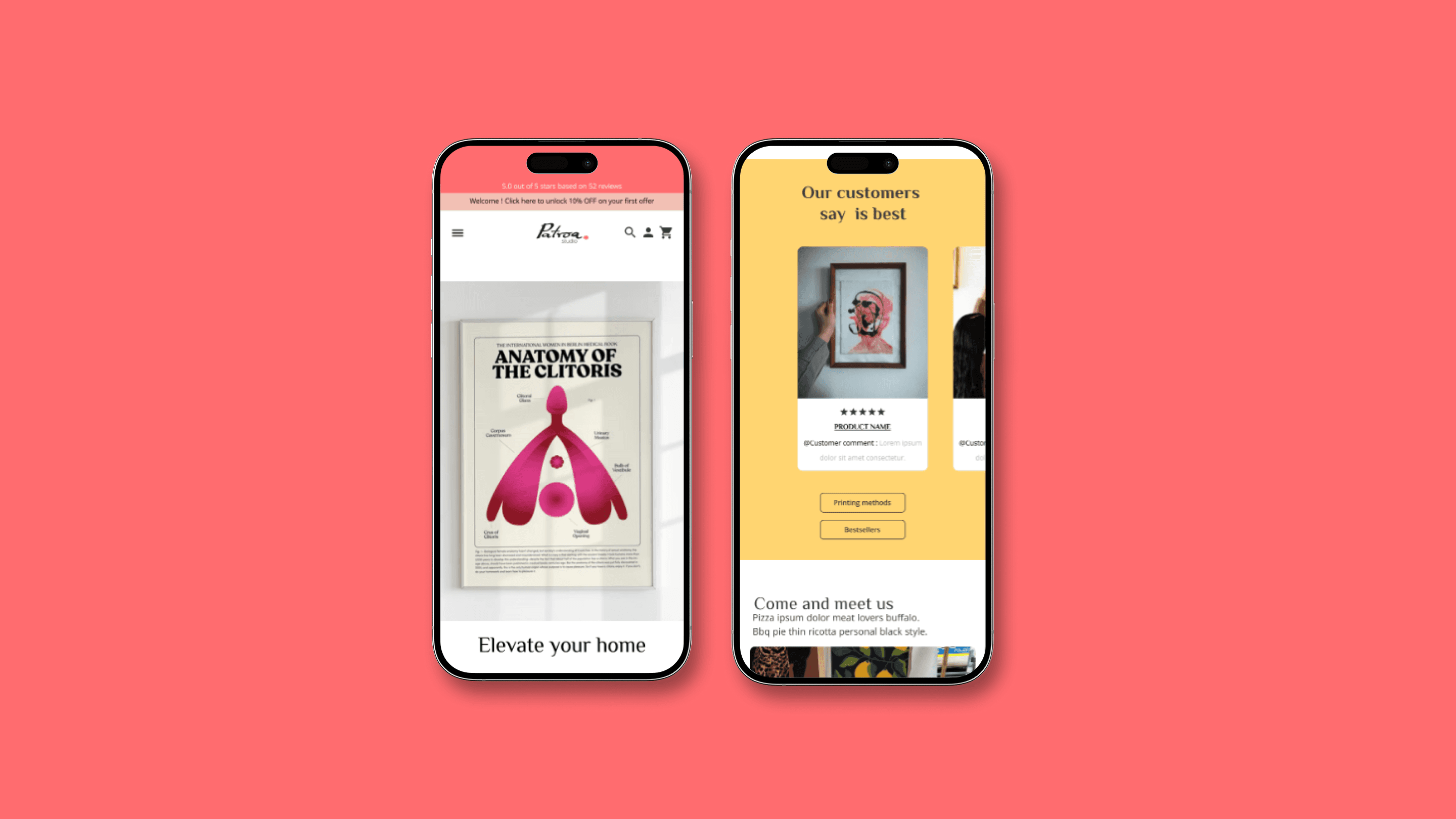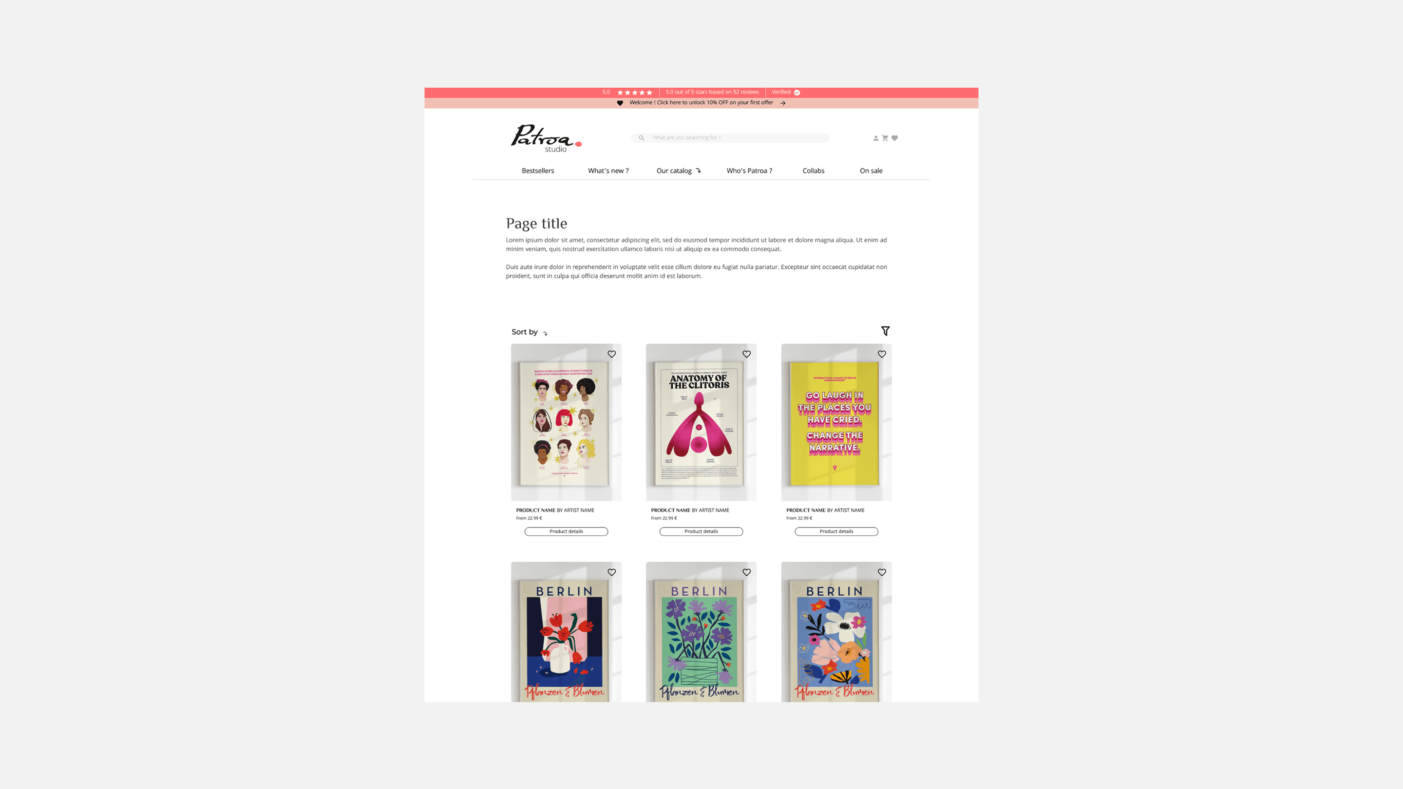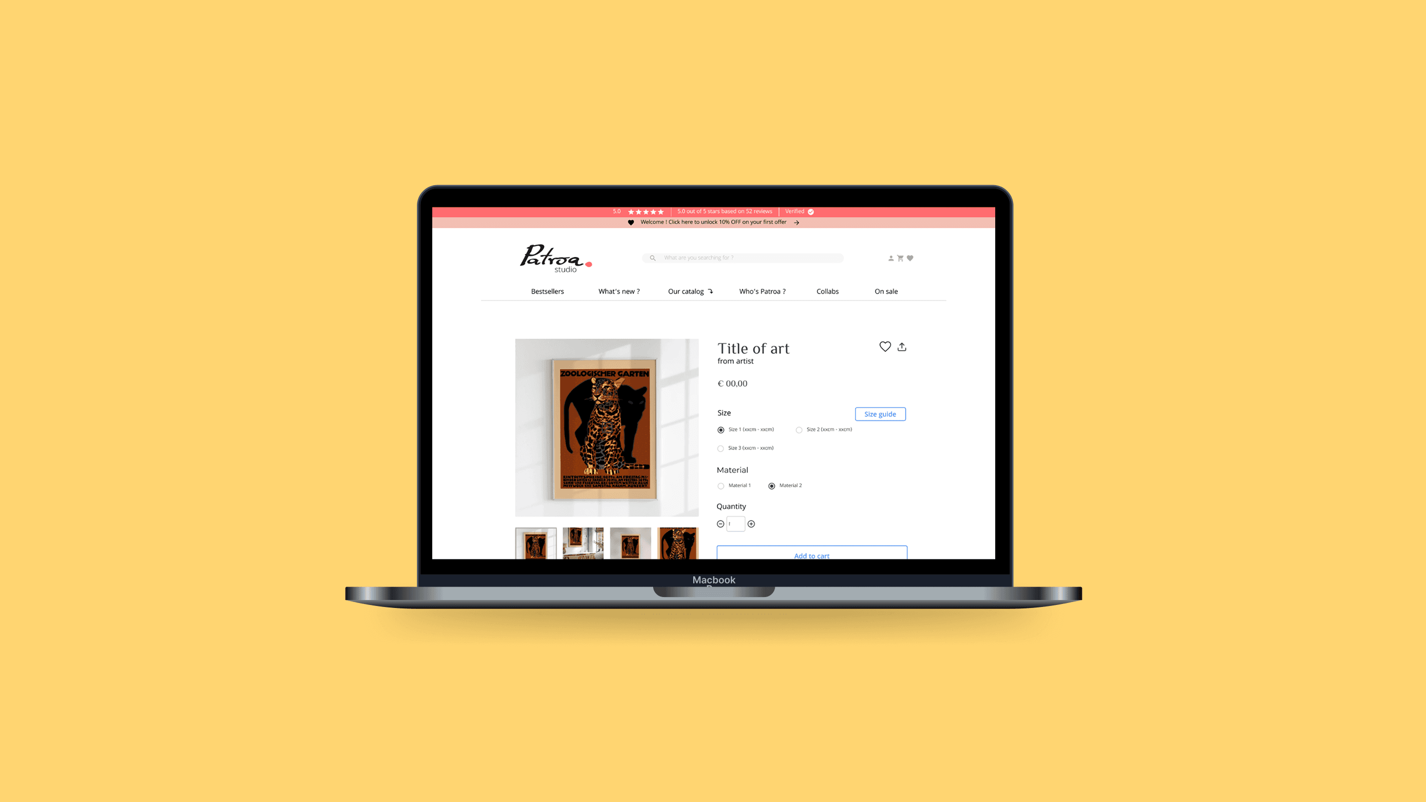 The final delivery was a high-fidelity, responsive ecosystem that replaced technical constraints with intuitive features like interactive size guides and simulated product placements. I developed a new, approachable brand identity—centered on an "artist’s signature" logo—to serve as a seal of quality. The result is an e-commerce platform that doesn't just sell prints, but successfully translates the "Patroa" mission into a professional, trustworthy, and high-converting user journey.