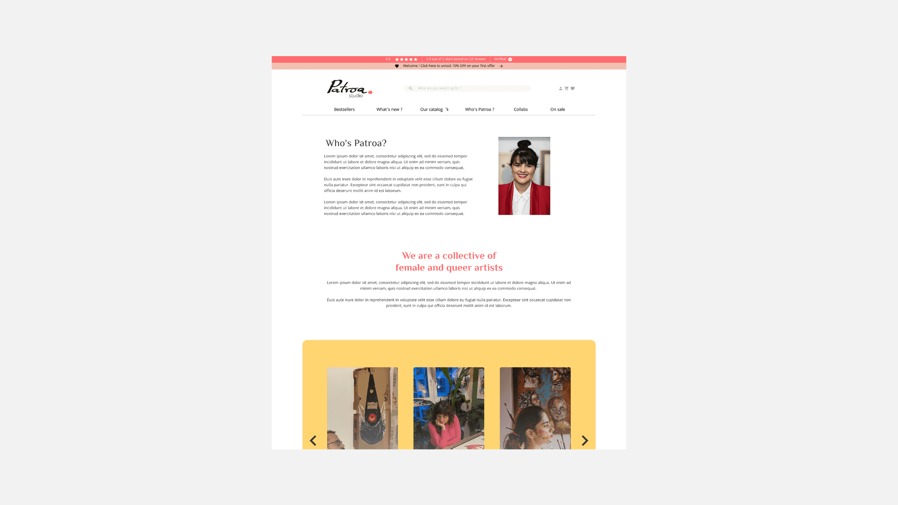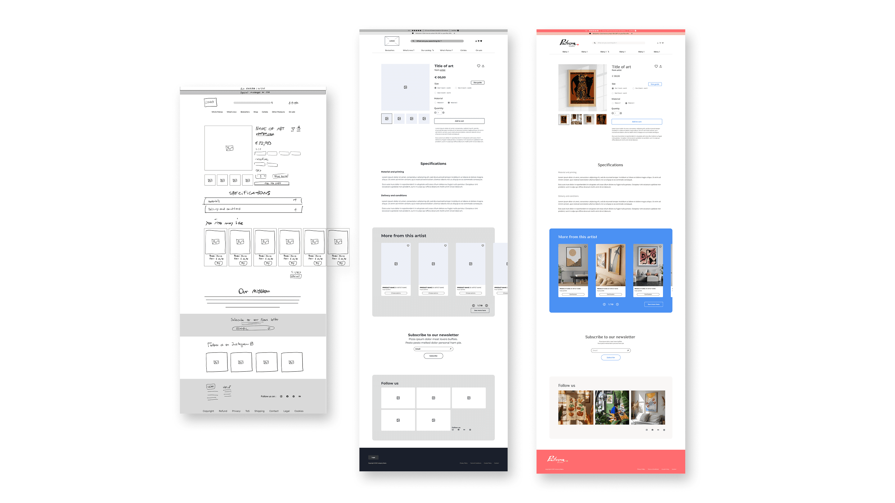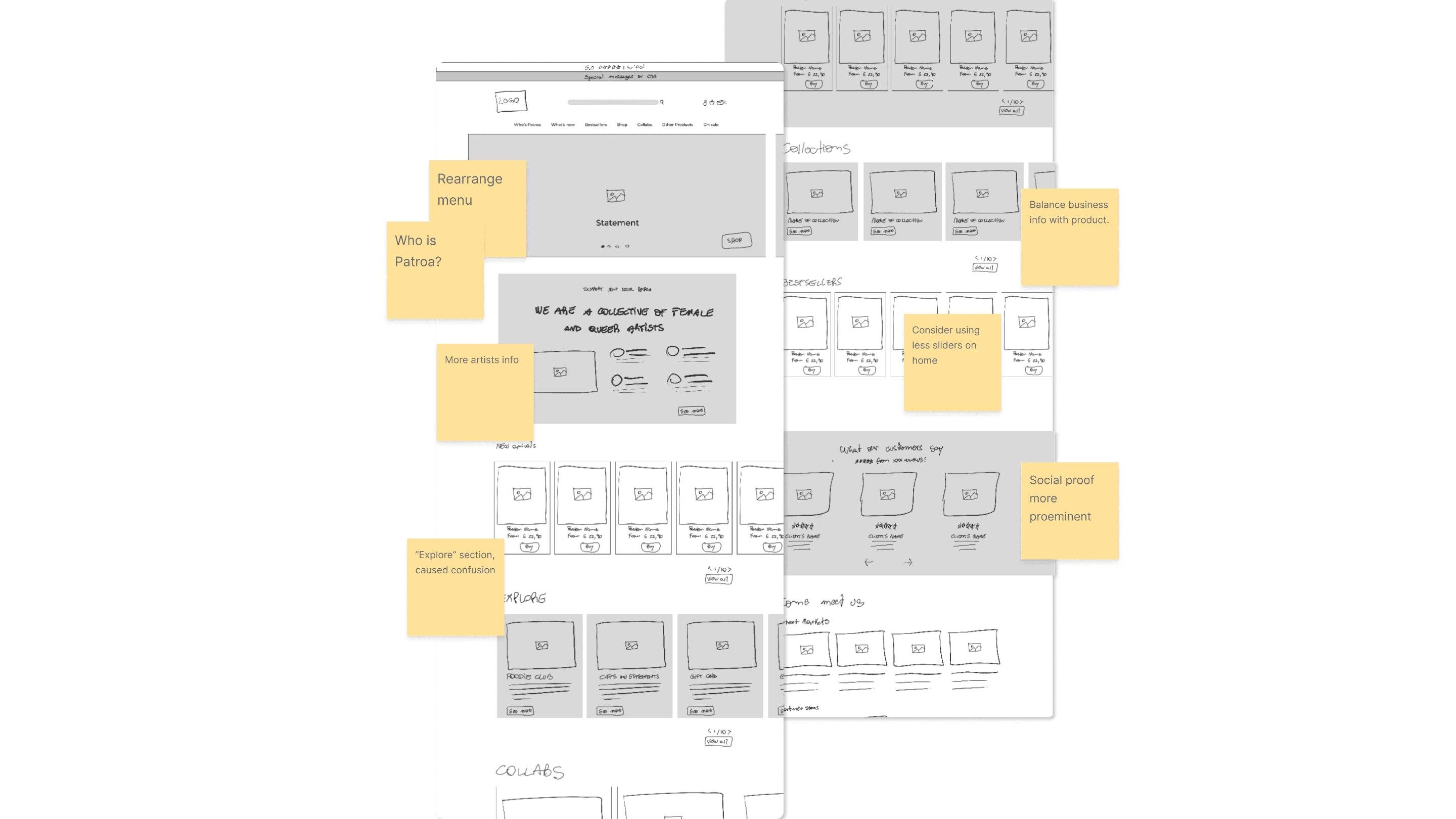 Patroa Studio, a niche e-commerce brand for queer and female artists, faced a common "small business paradox." While the brand had high-quality products and strong local loyalty, the online experience lacked the storytelling and technical clarity needed to convert "mindful consumers." Users struggled with navigation, ambiguous size guides, and a lack of emotional connection to the creators behind the art. I approached this by identifying the brand’s core differentiator: its community-driven mission. My strategy focused on "Social Proof through Storytelling." By redesigning the Information Architecture and introducing "Artist Spotlight" sections, I aimed to replicate the intimacy of a Berlin street market in a digital space. Every UI decision—from a clearer search bar to a revamped "About Us"—was designed to lead with empathy for the conscious shopper.